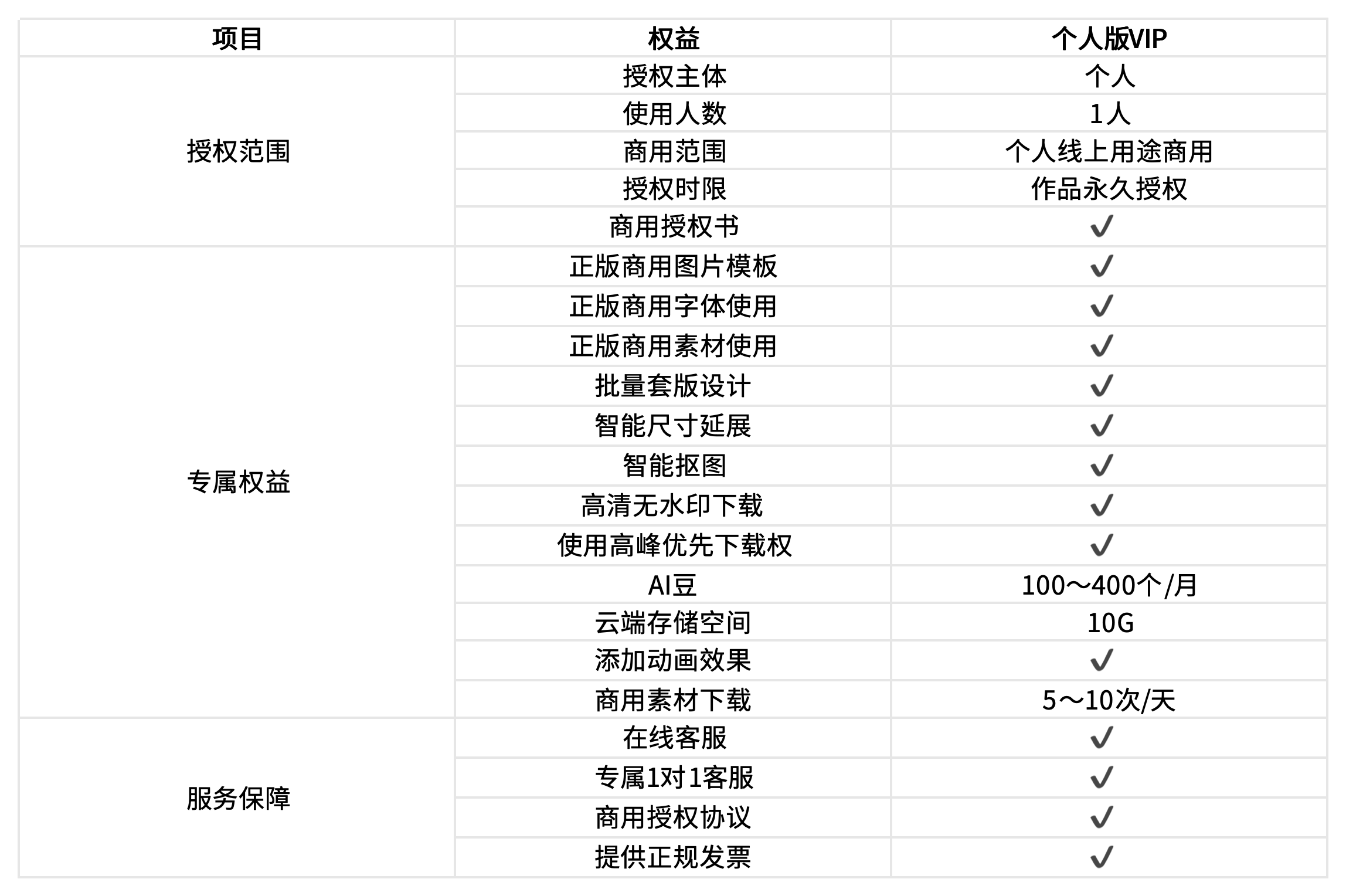 您订购笔格设计个人版VIP后,针对个人版VIP类别的不同,您可在如下范围内用于以自然人为主体从事的商业盈利行为,您需保证盈利及最终的受益主体均为个人。