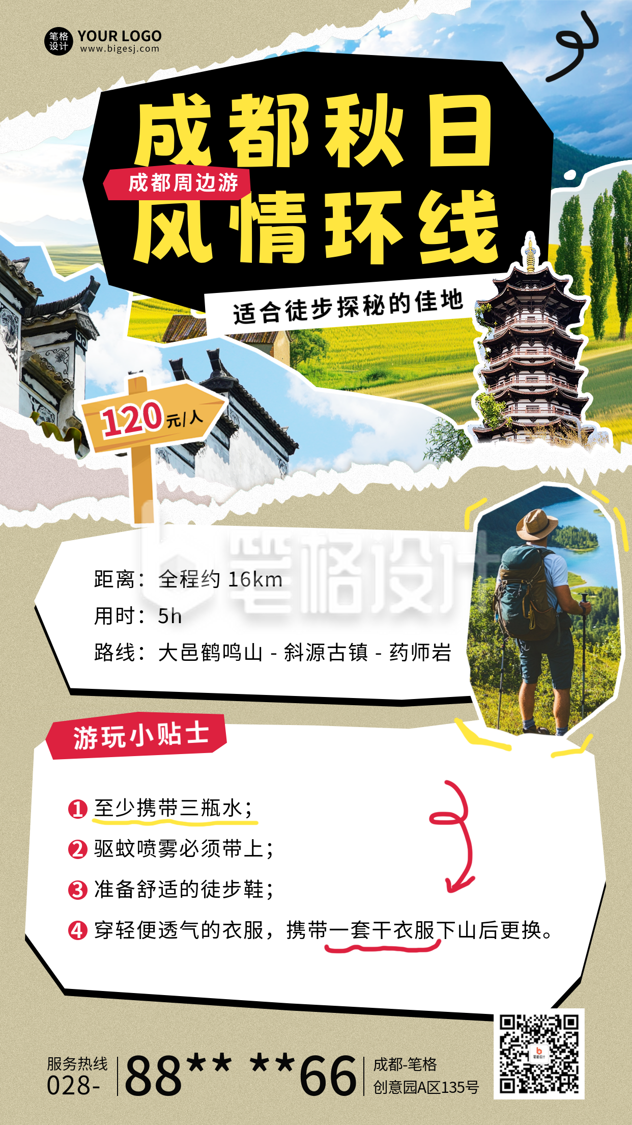笔格设计提供精美原创的秋季出游宣传撕纸风海报,此作品ID为:69416,主要用于手机海报方面,结合了活动宣传、秋天、秋季、宣传、旅游、出行、注意事项、秋游、撕纸风、旅游出行、徒步、AIGC等多个素材元素进行设计。手机海报均可商用,喜欢就点击“立即使用”,在线制作秋季出游宣传撕纸风海报吧,1分钟即可在线高效完成设计,并能下载手机海报图片。